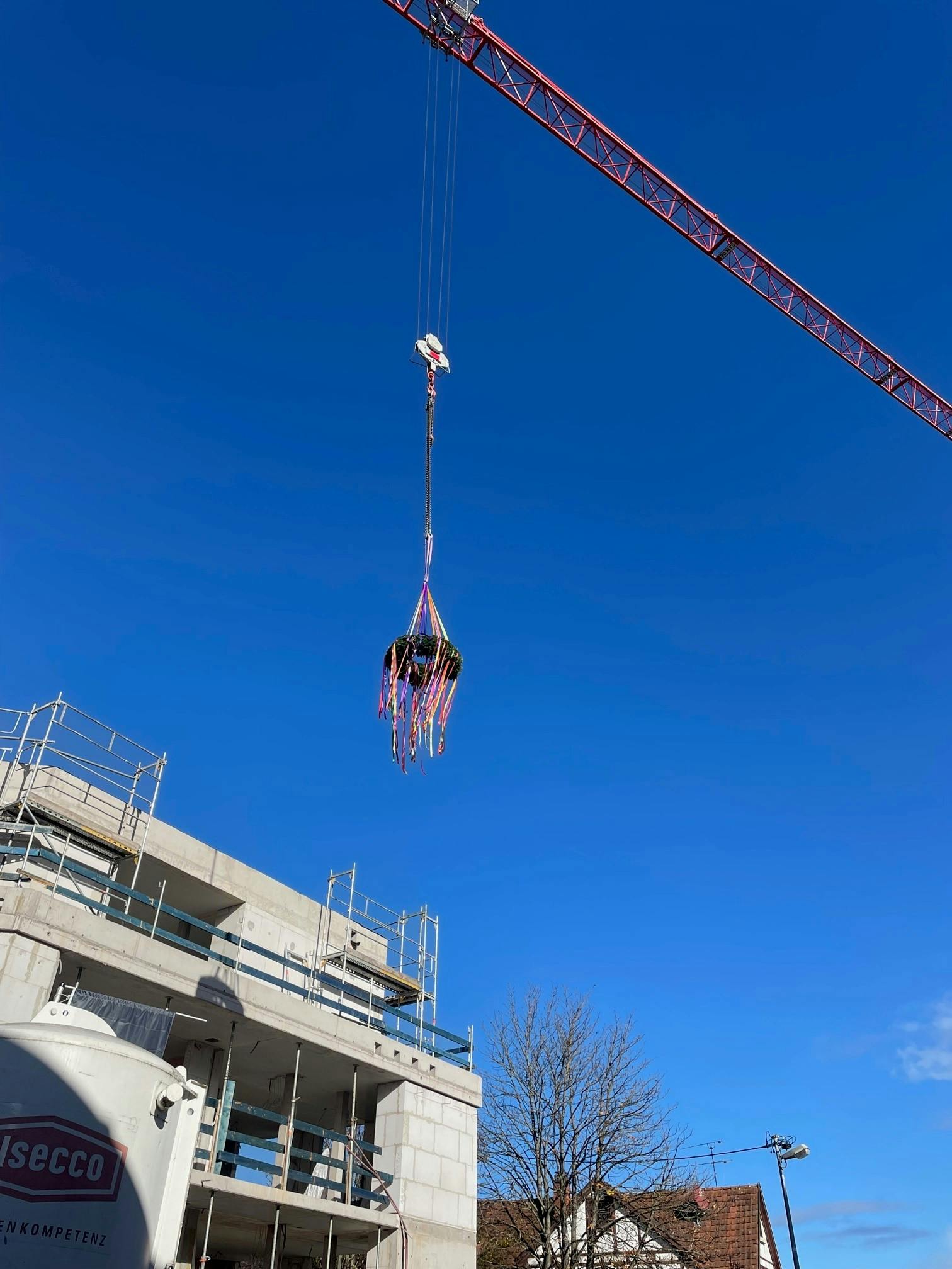 Mit traditionellem Richtspruch und standesgemäßer Richtkrone wurde zusammen mit allen Beteiligten vergangene Woche das Richtfest in Metzingen für unser Neubauprojekt 74 GREEN LIVING gefeiert.